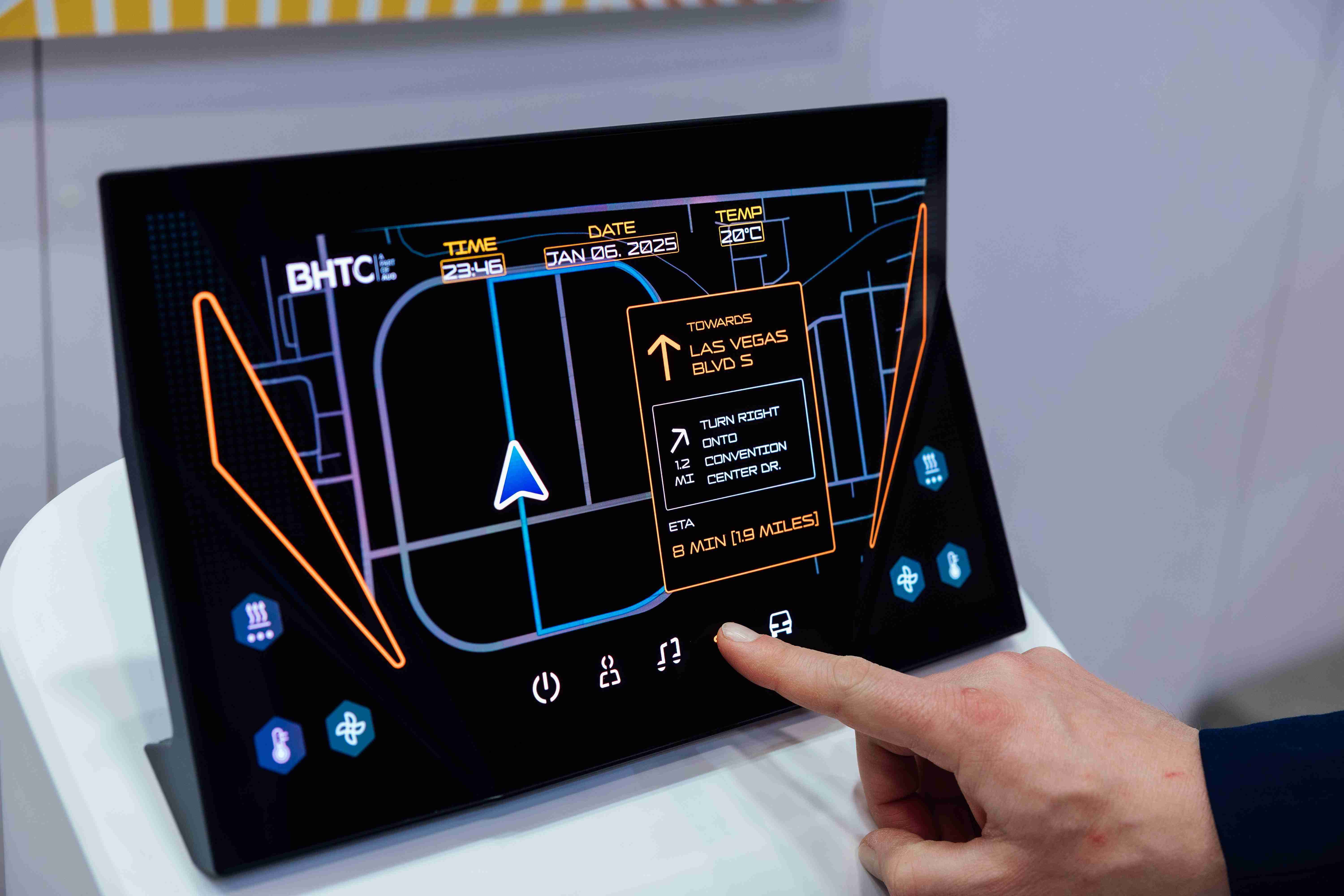 Micro LED可折迭触控显示器(Haptifold Display)结合BHTC多年HMI设计经验,,整合中控台和温度控制功能,,,以优美的曲面和独特的外型助力车内设计美学,,,,在辅以触控回馈下,,为驾驶带来更直觉的使用体验。。。